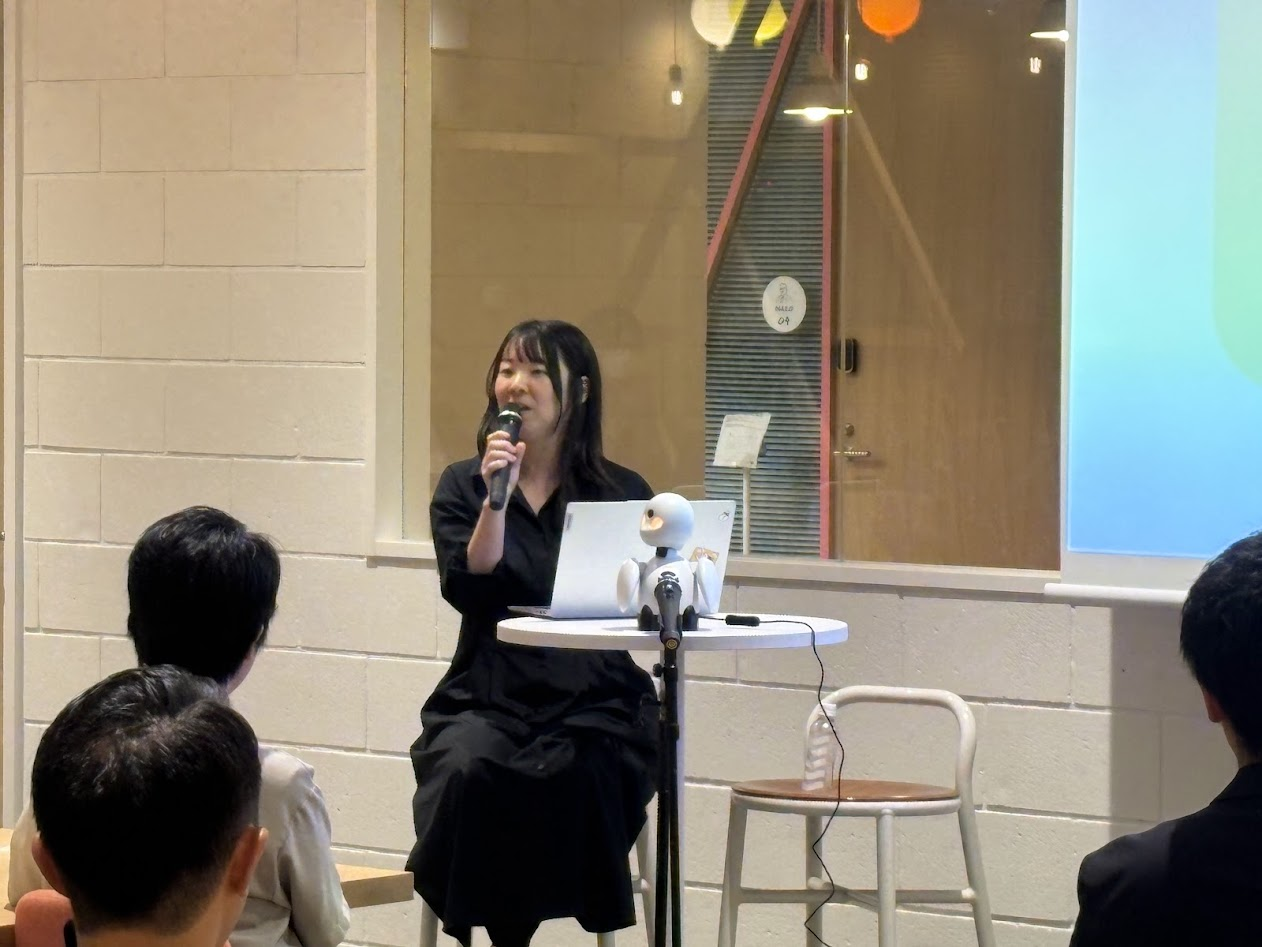 オリィ研究所の中島からは、分身ロボット「OriHime」を「AIではなく、誰かの分身」であると強調。テクノロジーによって、移動、対話、役割の選択肢を広げる存在だと語りました。同社が取り組む事業の中でも、特に分身ロボットカフェでは、病気や障害、育児、介護など様々な理由で移動困難な人々に社会参加や就労の機会を提供していると紹介。